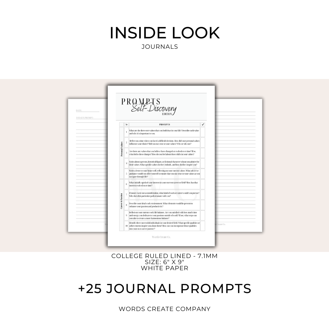 Unleash the power of your words with our transformative "Self-Discovery" Journal. Designed to ignite self-exploration, this journal is your trusted companion on your journey of self-discovery.